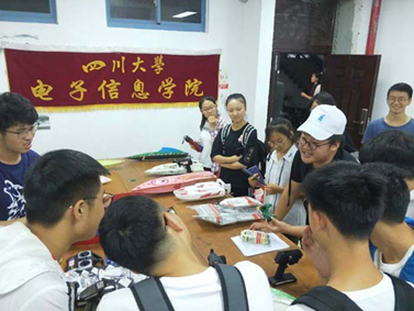 由于天降大雨,原计划由团委学生会主席团和部长团带领新生参观校园的活动被迫取消,但同学们的热情丝毫不减。上午十一点左右,同学们在江安校区知识广场集合,由团委学生会主席团带领他们进入电子科技园参观游览。