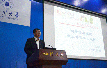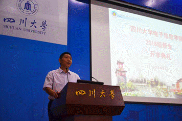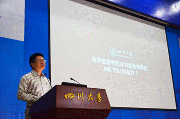 五粮春优秀青年教师获得者卿粼波副教授以“学长”的口吻亲切地为同学们展示了学院的发展现状与前景,并结合自身经历为同学的大学生活提出了很多建议;在校生代表2015级阳港同学为同学们分享了自己大学生活的体会和学习生活习惯,向同学们展现了他入学四年来凭借对专业的兴趣和坚强的毅力斩获各种优秀头衔及奖项的经验。最后,新生代表2018级学生詹沛文同学带领同学们回顾了有泪有汗的高考之路,他坚定大学是一个新的起点,明确了对自身的高标准和高要求,并表达了自己身为a漫