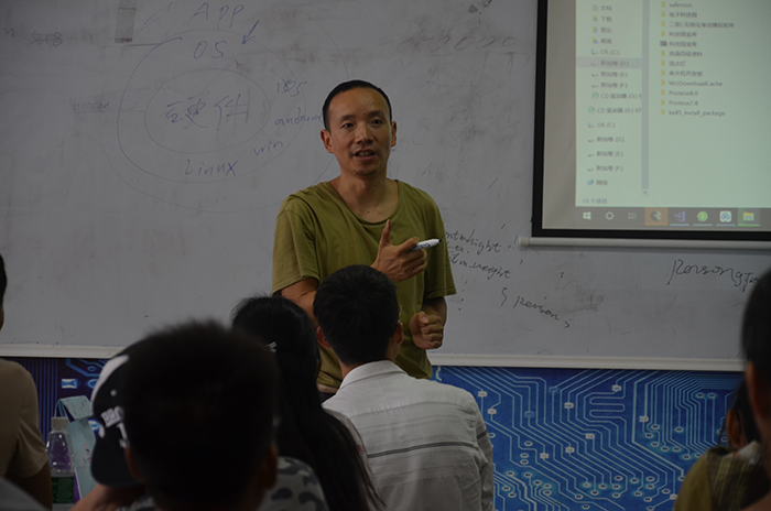 下午三点四十,交流会正式开始。首先,李小舜老师提到了现在常用的Windows系统,列举了几个Windows的问题,借此来引出今天的主角——Linux。接着,李老师向同学们介绍了Linux的起源,讲述它是在何种背景之下被创造出来的。然后,李老师继续讲述Linux的发展,让同学们知道了Linux如何走到了今天。基础知识讲授过后,李老师向同学们演示如何安装并使用Linux,同时还给同学们说明安装之中会出现的问题,以及问题的解决方法。同学们对此很感兴趣,部分同学甚至直接在现场尝试安装,场面十分热闹。演示过程中,李老师还热心回答同学们有关Linux的问题,并提出自己对问题的看法和见解,让同学觉得获益良多。而时间在答疑解惑中悄然流逝,本次交流会也到了尾声。