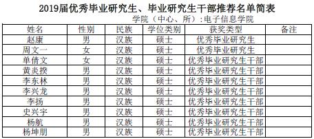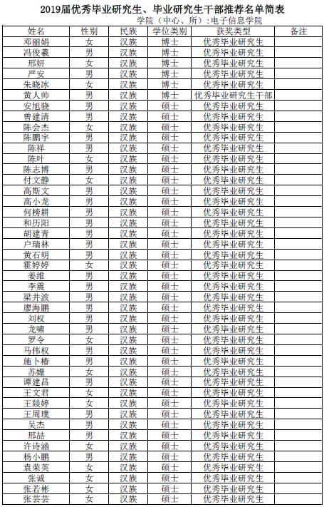 由同学们自愿申请、班级推荐,经过学院评议小组评审。现将获得a漫 2019届优秀毕业研究生、优秀毕业研究生干部名单公布如下: