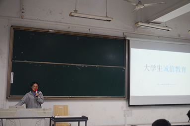 此次活动不同于以往形式,主要由学生讲解为主,老师总结为辅。活动开始时,陈林老师首先向同学们阐述了诚信的重要性。然后,陈璐同学通过举“哈佛学术造假事件”的例子,具体的说明了不诚信的危害。邓皓予同学则从“不信不立,不诚不行”的角度,再次强调了诚信的重要性。与此同时,孟滋常老师在另一个教室组织同学上台讲解。首先,李奕霏同学通过自问自答的方式,提出“什么是诚信?”、“诚信,有何作用?”、“为什么我们要讲诚信?”这三个问题,立体的解释了诚信。其次,吴杰同学举出“立木为信与烽火戏诸候”和“华盛顿与尼克松、克林顿”两个例子,阐述了国无信不兴,人无信不立的真理。最后,由孟滋常老师总结发言。他强调到,一个人若没有了诚信,就失去了在社会上的立足之地,同学们一定要在今后的学习、生活和工作中树立诚信意识,养成诚实守信的良好习惯,诚信做事,诚信做人。