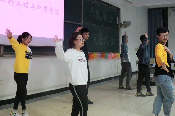、外国语学院、生命科学学院、材料学院、数学学院、建筑与环境学院联合举办的青年志愿者新成员宣誓大会。