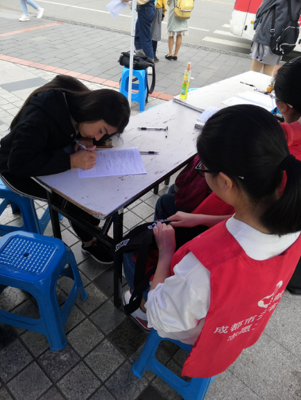 早上八点半,志愿者们来到青春广场旁集合,等待献血车的到来。九点左右,在献血车来到了江安校区后,志愿者们便马上来到自己的工作岗位上。与此同时,一旁早早等候的献血的同学们也来到献血摊位开始填表。