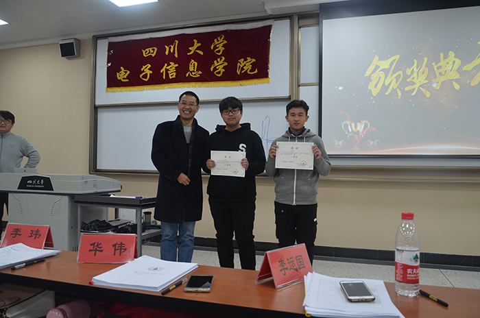 活动伊始,主持人简单介绍了本次活动的流程。之后,便是电子科技园POV协会(第一组)学术型社团指导教师李玮副教授发表讲话。李玮副教授谈到:创新,是推动国家发展,推动社会发展的重要动力。国家有了创新,才有持续发展的源源不断的动力。接着,电子科技园行政指导教师,学院分团委书记李运国老师也发表了讲话。李运国老师首先对参赛选手表达了赞许,他说到:本次比赛既是为了选出具有创新特色的概念产品,也是为了锻炼同学们敢于创新,勇于创新的拼搏精神。李运国老师强调道:比赛不应该仅仅以获奖为目的。获奖固然重要,但在比赛过程中的收获同样重要。所以李运国老师鼓励同学们多多参赛,在比赛中锻炼自己!交流会环节结束后,便到了最激动人心的颁奖环节。主持人宣布获奖同学的名单,李运国老师,李玮副教授等嘉宾为获奖选手颁奖,并合影留念。台下观众纷纷鼓掌,表达自己对获奖选手的祝贺。活动最后,参与活动的全体人员进行了合影,为本次活动画下了完美的句号!