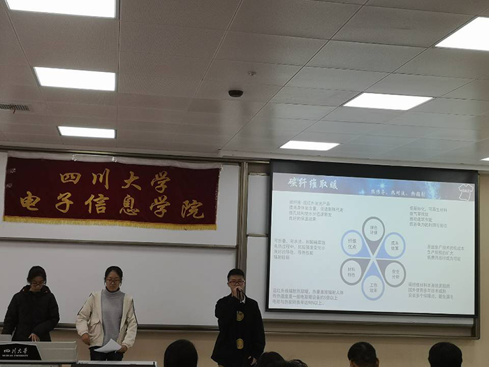 下午2:00,本次概念产品设计大赛决赛正式拉开序幕。首先由主持人尤佳程同学介绍比赛规则与比赛流程。比赛分为两个部分,分别是作品展示,评委质询。比赛流程是:每个小组的代表进行产品讲解,之后进入到小组答辩环节,最终由评委进行评分。李运国老师,陈林老师等评委对选手们的产品做出了精彩点评,并对产品中的一些亮点给出了高度的评价,本次概念产品设计大赛的决赛涌现出了许多新颖的设计,例如碳纤维取暖衣物,刻度圆规,无线自热鼠标等设计,既贴近生活,又蕴含了科技创新之美。同时,选手们的精彩答辩也赢得了台下观众的阵阵掌声。在全部选手答辩结束后,本次决赛也落下了帷幕。