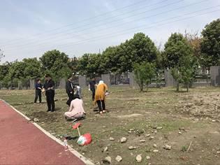 本次实践活动主要是领导和老师们一起带着学生们劳作。实践开始,老师们带领学生们一起搬地里的石头,在清理完土地里的石头之后,学生们开始用铲子在土地的两边铲出沟壑,明确了自己学院的种地范围。最后,老师和领导们亲自讲授并示范了种植作物的技巧以及将植物转移的方法。紧接着,同学们开始自己去尝试种植植物,整个活动都在师生们共同的劳动中度过。