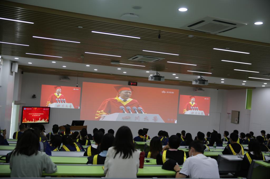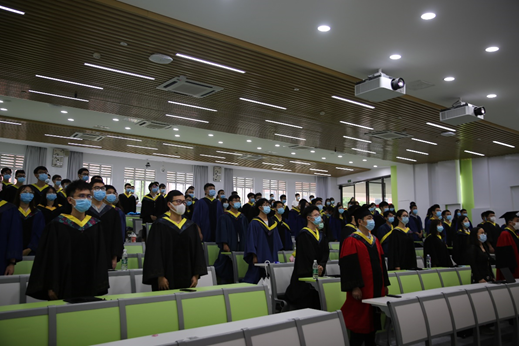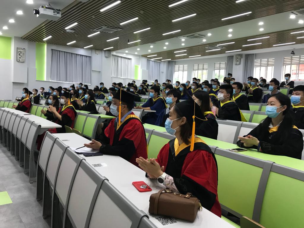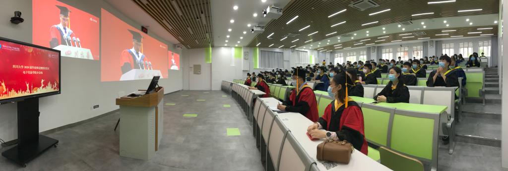 40名毕业生在主会场参加了典礼,党委书记邰明松同志、院长冯国英教授和部分院领导、导师、辅导员,以及100余名毕业生在望江校区基教楼C201的分会场参加了典礼。