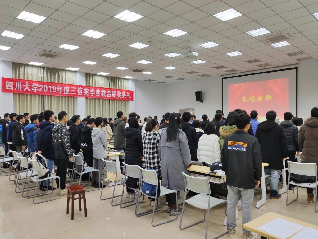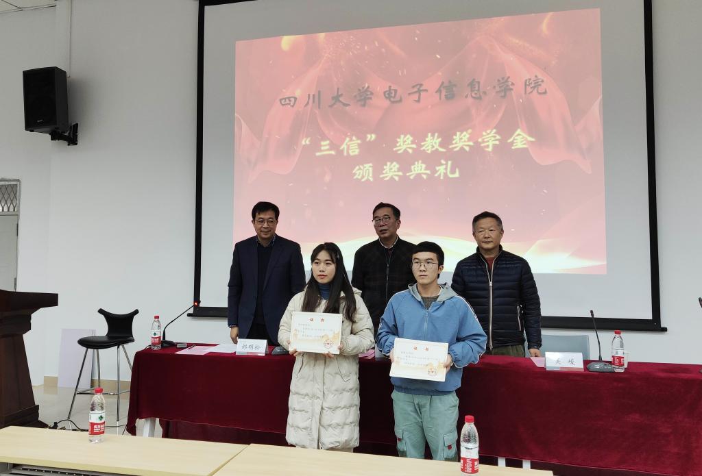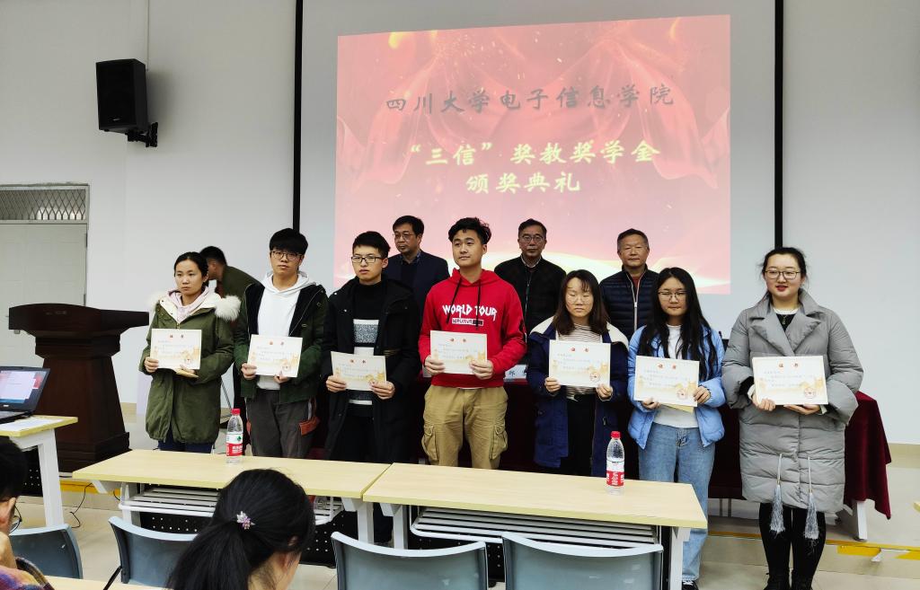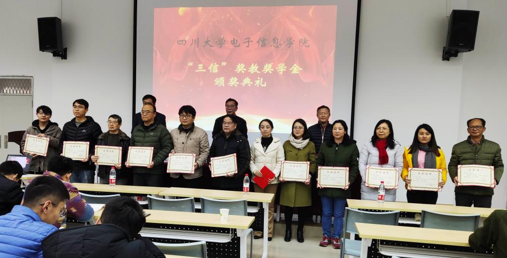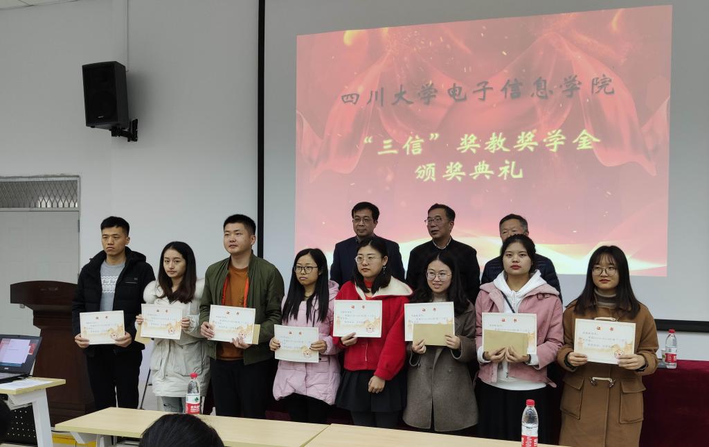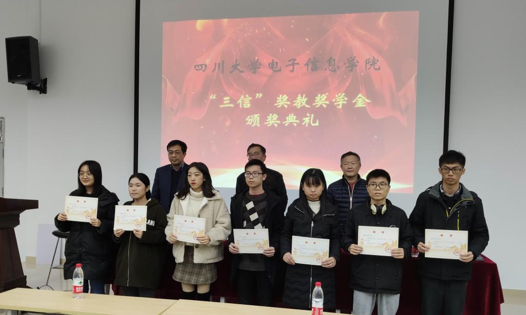 2019年度“三信”奖学奖教金的颁奖典礼在望江校区西区附五教101成功举行。本次典礼有幸邀请到了重庆三信电子有限公司董事长邱宏先生、副总经理吴峻先生,a漫