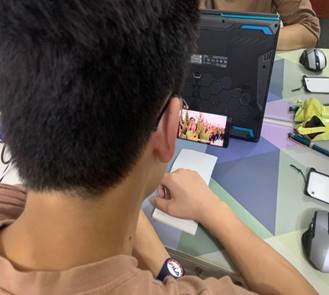 2020级新生在认真观看国家公开课