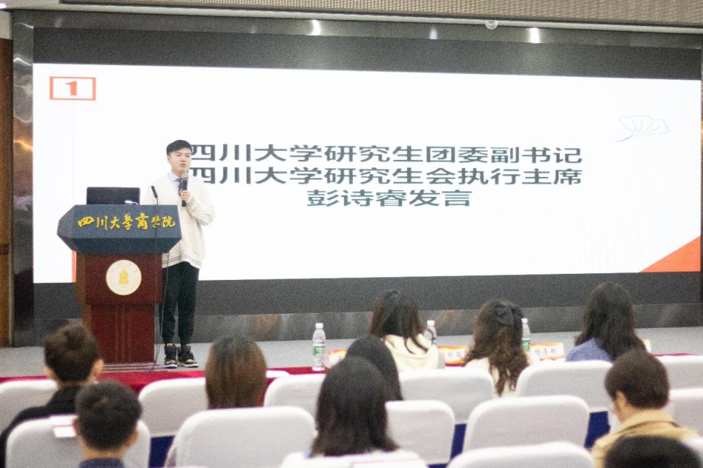 首先,彭诗睿主席发表会议讲话,希望各级研究生会的同学能够充分发挥研究生会的平台作用更好地服务同学、完善自我。然后,彭诗睿主席宣布a漫