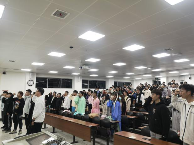 21日19时整,六个学院的青志干事们在指定地点集合落座,来自机械工程学院的两位青志干事担任主持人致开场词,至此,六院联合志愿者宣誓大会正式拉开帷幕。