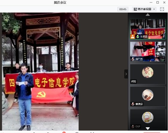 2019级硕士研究生于望江校区举办了“学四史,祭英烈”主题活动,2019级研究生辅导员何阳老师组织各班同学,通过线上线下相结合的方式全程参与到此次活动。