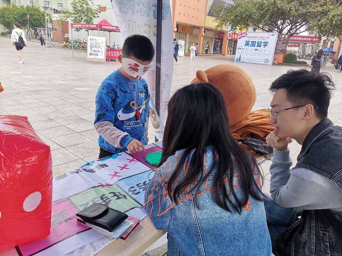 在活动负责人向志愿者们详细讲解完活动规则后,各位志愿者都积极地参与到宣传活动中。活动主要由“猫狗大富翁”小游戏构成,参与人员通过完成不同任务了解到不同的科普小知识并获得相应奖品。活动总共有6大任务,每个任务都有助于参与人员学习到有趣的流浪猫狗小知识。活动开始没多久,活动中的“猫狗大富翁”小游戏很快就引起了多名路过同学的注意,志愿者们也十分热情地邀请了同学们参与活动。活动过程中充满了欢声笑语,参与的同学们不仅了解到了关于流浪猫狗的小知识,还收获了快乐。