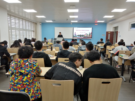 2017级辅导员孟滋常老师和2018级辅导员陈林老师进行宣讲。主会场活动2021年4月23日下午14时综合楼C座103教室举行。参会嘉宾有党委学生工作部李宜老师、a漫