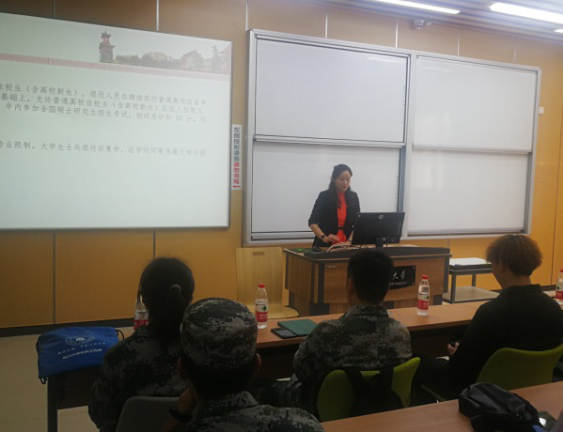 首先,会前观看了宣讲视频,强化同学们服兵役的责任感和参军保卫祖国的意识。接着学工部李宜老师做了致辞。致辞中李宜老师讲到大学生征兵入伍的意义。大学生征兵让中国知识分子行列当中拥有了军人气质。军队的锻炼环境具有特殊性,它培养人的坚强意志和爱国精神,同时,中国军队有不少在战争年代因某人或某一场战斗闻名全军的光荣部队,在这样的部队接受传统教育,能加强自己的荣誉感,感受前辈军人英勇善战,无畏的牺牲精神。随后,由2017级朱佳兴同学介绍了他的部队生活并且讲解了大学生参军的优惠政策和待遇。主要有两个方面,首先是学费减免,国家对应征入伍义务兵役的高校学生,在入伍时对其在校期间缴纳的学费实行一次性补偿或获得的国家助学贷款实行代偿。其次是学历政策服役前被高校录取的,退役后可以选择继续复学,复学后免修军事技能课,直接获得学分;经学校同意并履行相关手续后,可转入本校其他专业学习