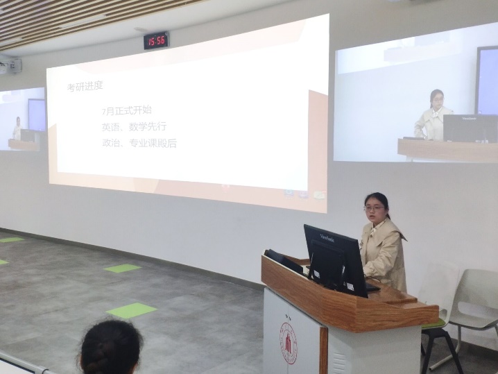 而张宇琦同学用幽默风趣、贴近同学们生活的语言向我们介绍了她的考研经历。在本科期间成绩不太理想的她通过努力准备考研,最终得偿所愿考上了a漫