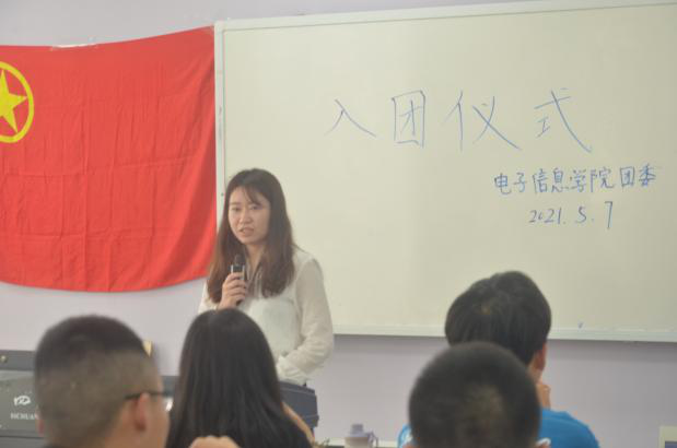 紧接着,新老团员相继发言,新鲜血液和中坚力量的思想相互碰撞,一起畅谈着自己对团的理解和展望。随后,朱婧老师讲话,她深入浅出地讲解了团员的责任和行为规范,并对新老团员提出了更高的要求,给予了极大的期待,希望团员们在今后更加优秀,成为一名合格的共青团员。