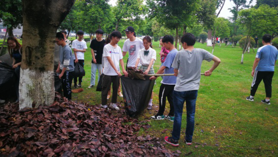 领取了清扫工具的电子信息工程专业的同学门开始认真对学院江安校区劳动负责绿化区域开展清扫工作。大家或是捡,或是扫,或是扒,将整个小花园内的落叶、塑料袋、烟头等种种垃圾都清理干净了。整个过程都充满了大家的欢声笑语,适当的劳动也给忙于学业的同学们带来了许多乐趣与感悟。