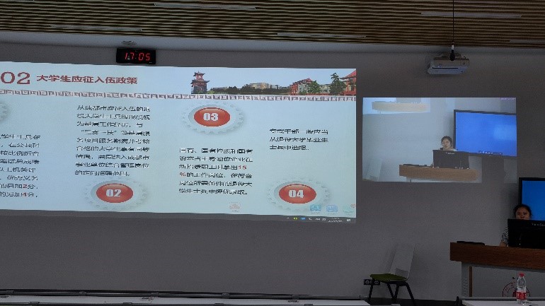 于2021年5月28日下午4:55在望江校区基础教学楼C101和C203开展大学生应征入伍政策介绍。本次介绍会由李运国老师和陈林老师主讲。