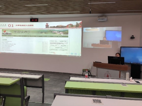 在本次应征入伍介绍中,首先向同学们介绍全国征兵报名唯一官方网站——全国征兵网,让同学们可以在此网站对详细政策进行了解。然后继续向同学们介绍大学生应征入伍政策,分别就应征入伍相关要求,包括应征条件、年龄规定、身体基本条件,和入伍流程做了详细介绍;对国家、省、市及学校的优惠政策进行说明;对今年征兵任务和重点关注人群进行分析分类。此外,最后,陈老师对a漫