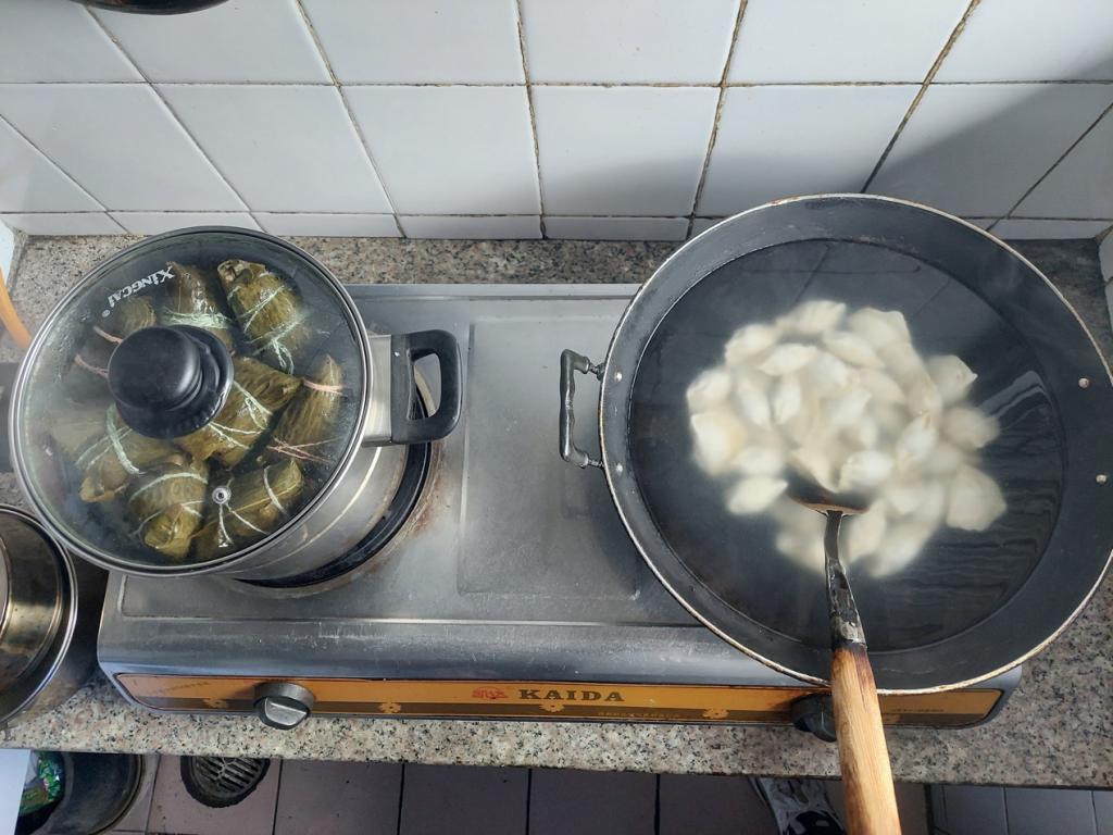 研分会策划组织的志愿服务队来到1962年于川大无线电系毕业的冯声秀老师家中,和冯老师一起蒸粽子煮饺子。粽子的清香飘满了整个房间,冯老师与志愿者们在欢声笑语中度过了一个温馨的传统佳节。