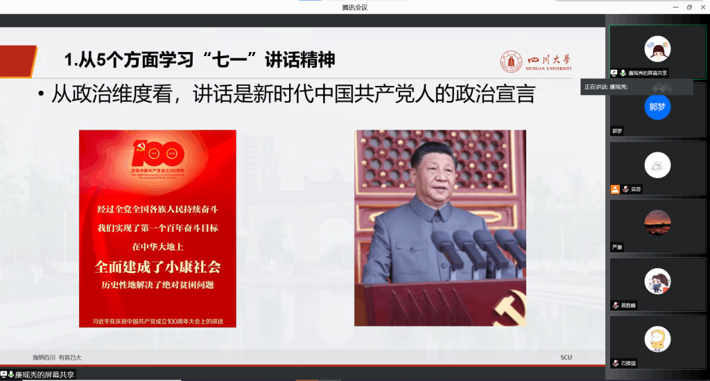 2018级本科党支部于2021年9月30日下午3时,在腾讯会议,举办主题为“深研讲话精神 汲取奋进力量”的支部活动,2018级本科第一支部委员会支部书记陈林老师,以及2018级全体党员参加本次活动。