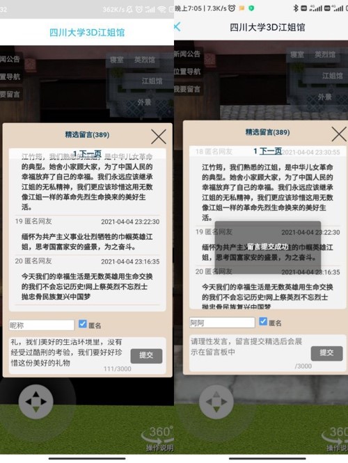 首先,大家通过学校英烈馆开通的网上祭英烈宣传教育平台,参观了学校英烈馆、江姐馆及江姐在川大生活时的寝室,在线上为英烈鲜花、留言等,表达了对革命先辈的哀思。