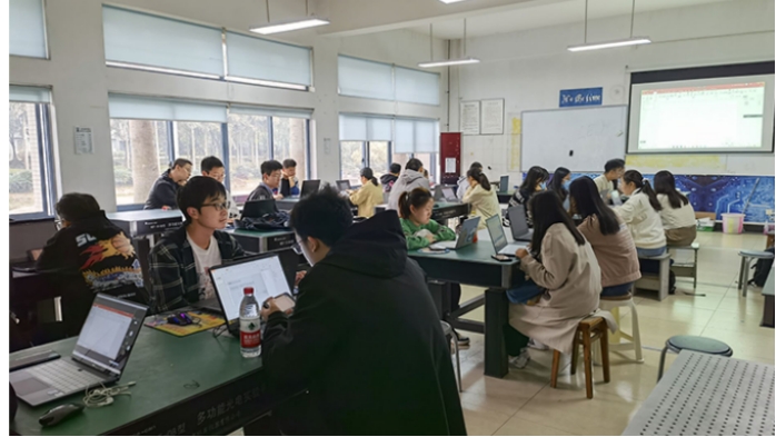 认真听讲的同学们 |