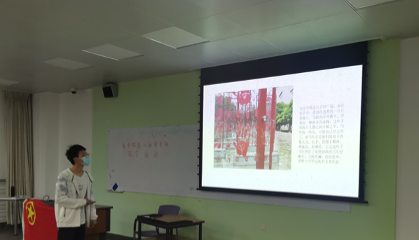 本次活动围绕“青春告白祖国”的主题展开,具体活动形式为小组同学进行“我与祖国合张影”摄影展示,将爱国内化于心外化于行,展现当代青年朝气蓬勃的精神风貌,在“请党放心,强国有我”的时代强音中,积极践行新时代新青年的责任与担当。第一小组的同学们分享了他们与祖国的合影,其中包含参观彭家珍纪念馆、在中国老兵手印广场为先烈献花以及小时候在国旗下敬礼的图片。岁月悠悠,初心不变,一张张质朴温馨的照片是同学们对祖国最由衷的告白。随后,团支书总结并分享了此次活动的意义及启示。最后,班长在同学们热烈的掌声下宣布本次团日活动圆满结束。