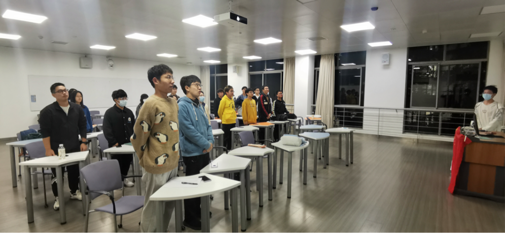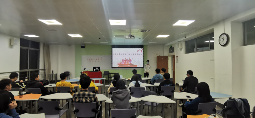 电子信息工程一班团支部于江安一教A201教室召开“研学四史明初心,奋进青春勇担当”主题团日活动。支部书记罗岩泓担任主持,支部全体成员踊跃参加。