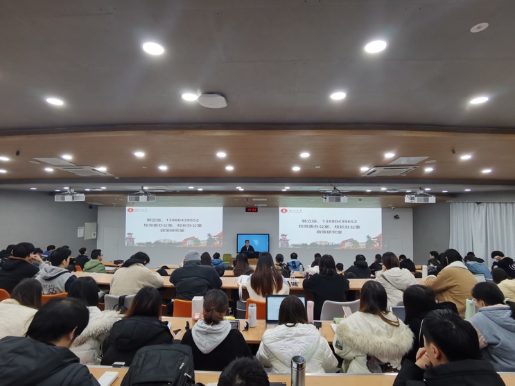 2019级本科兼职辅导员郭立琼老师在望江校区基教C101讲授“学习贯彻党的十九届六中全会精神,做担当大任的时代新人”主题党课,2019级本科辅导员吴秀玲和a漫