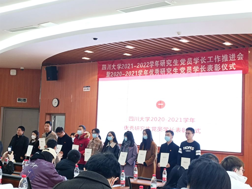 望江校区研究生院2区101报告厅顺利举行,会议对2020-2021学年的优秀研究生党员学长进行表彰并颁发了获奖证书。