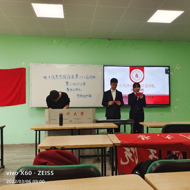 第二十三届团校最后一次行课。本次活动旨在让同学们深入了解党史,同时也使同学们了解到保研相关事宜。本次活动出席嘉宾有朱婧老师和已保研至浙江大学的蔡泽斌同学,学院大一大二学生积极参与活动。