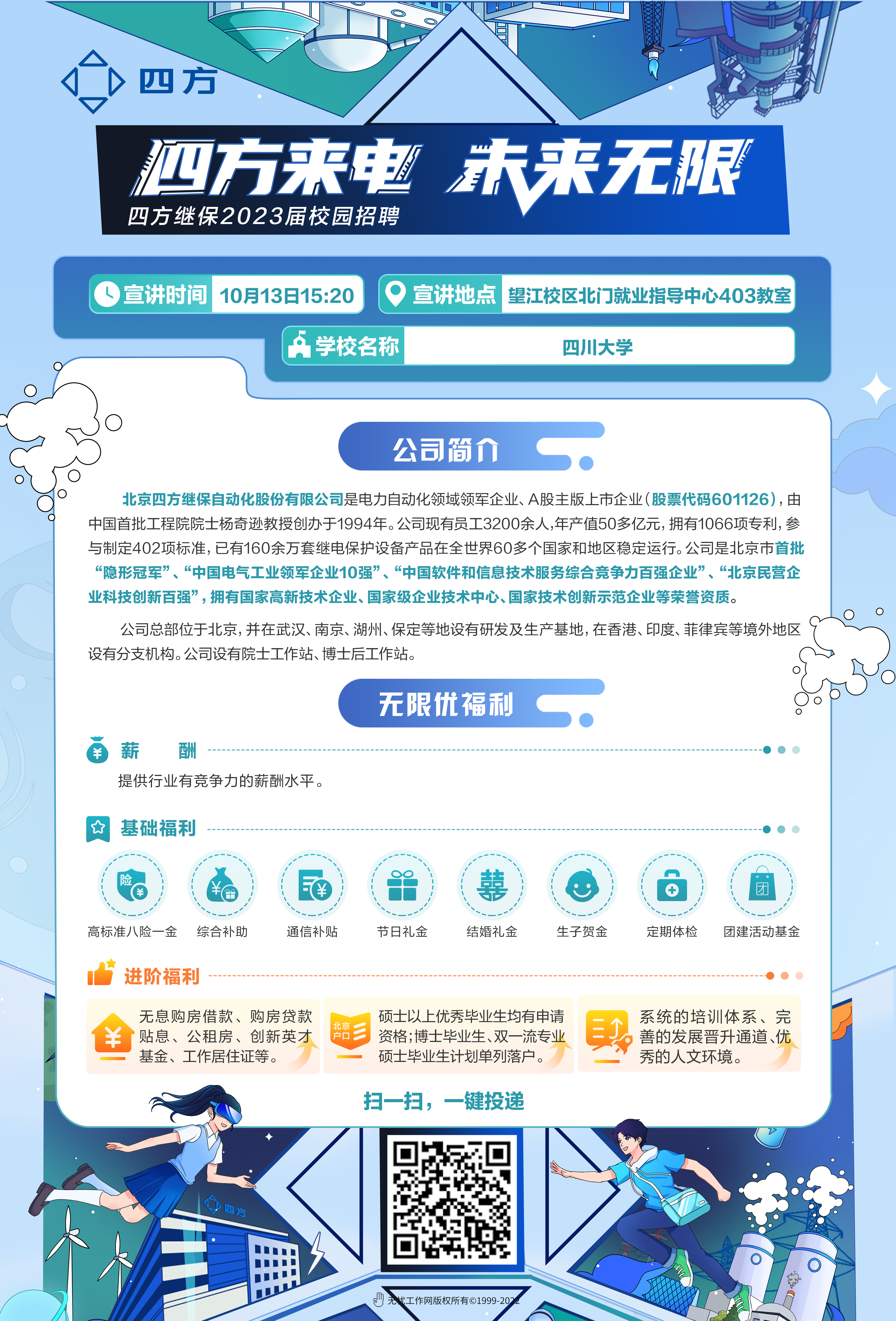 四方继保是一家主板上市公司,一直与我们学校保持着友好关系,福利待遇都非常优越哦。