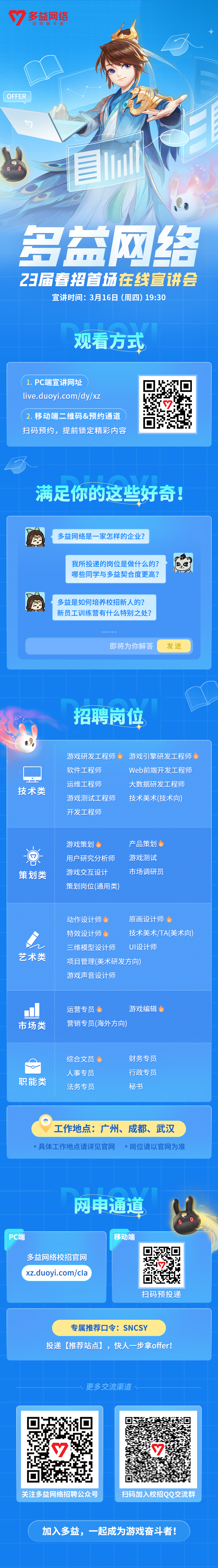 报名预约“多益网络校招在线宣讲会”,即有机会获取面试直通卡,更多干货等你来!