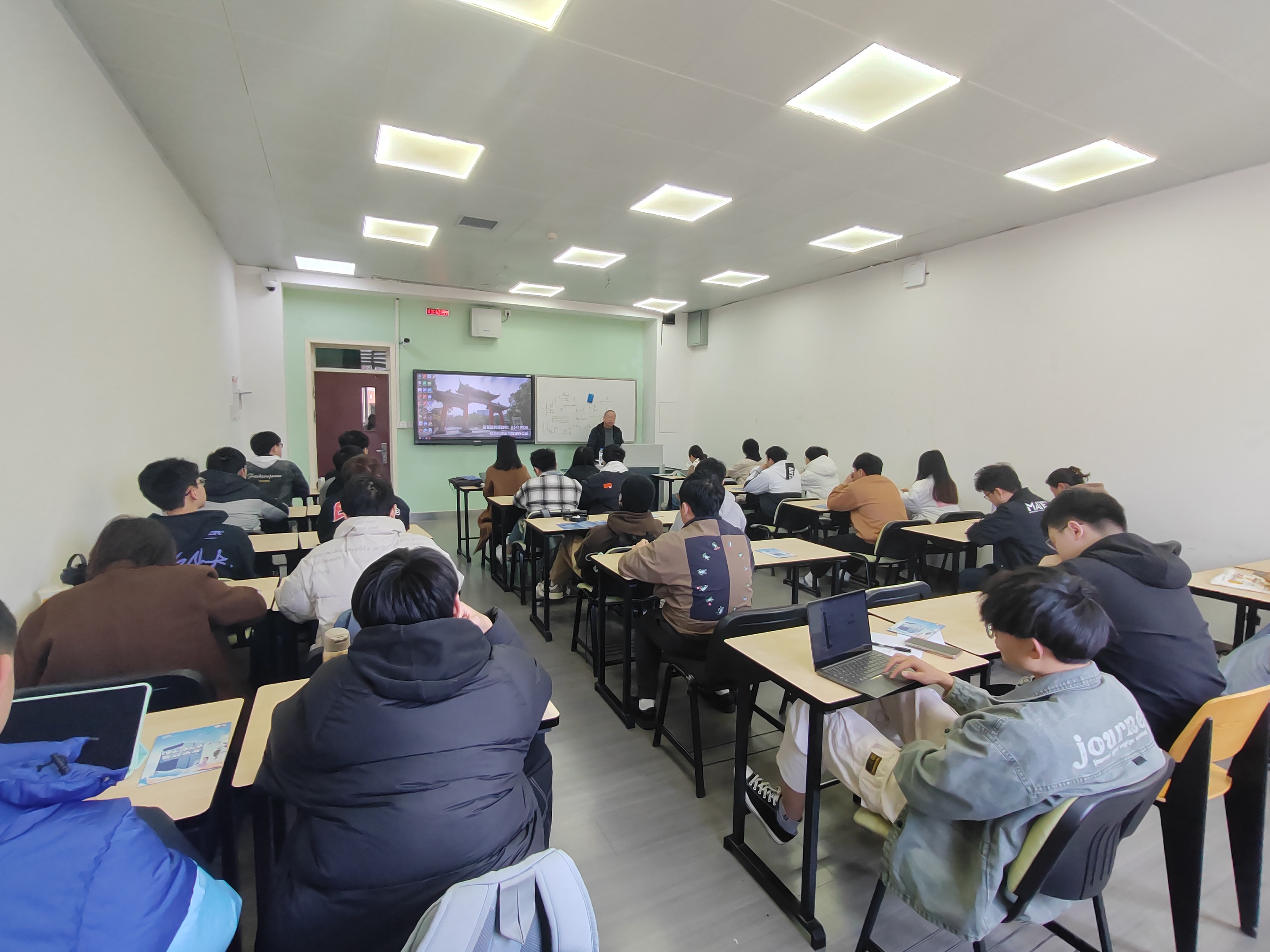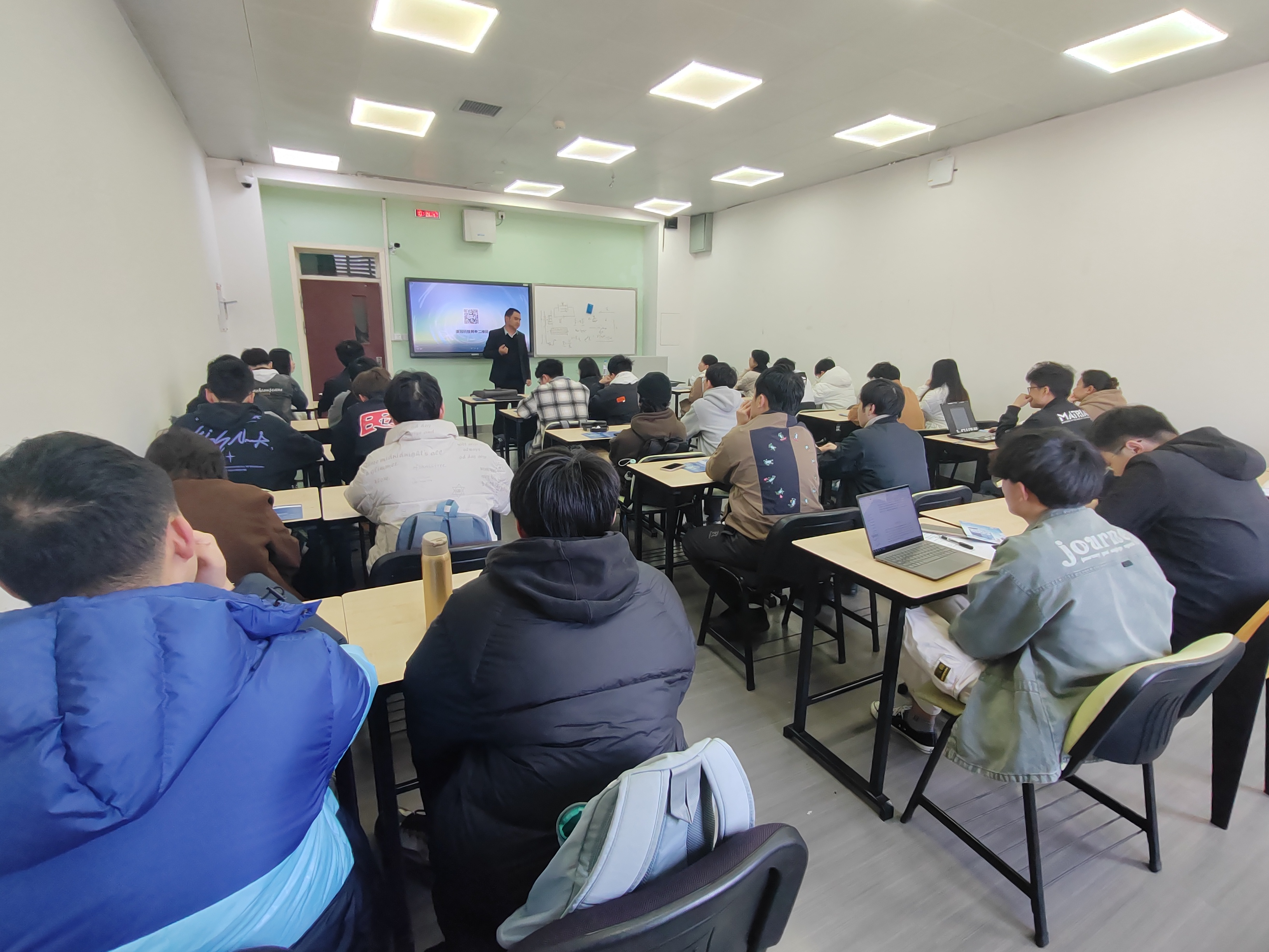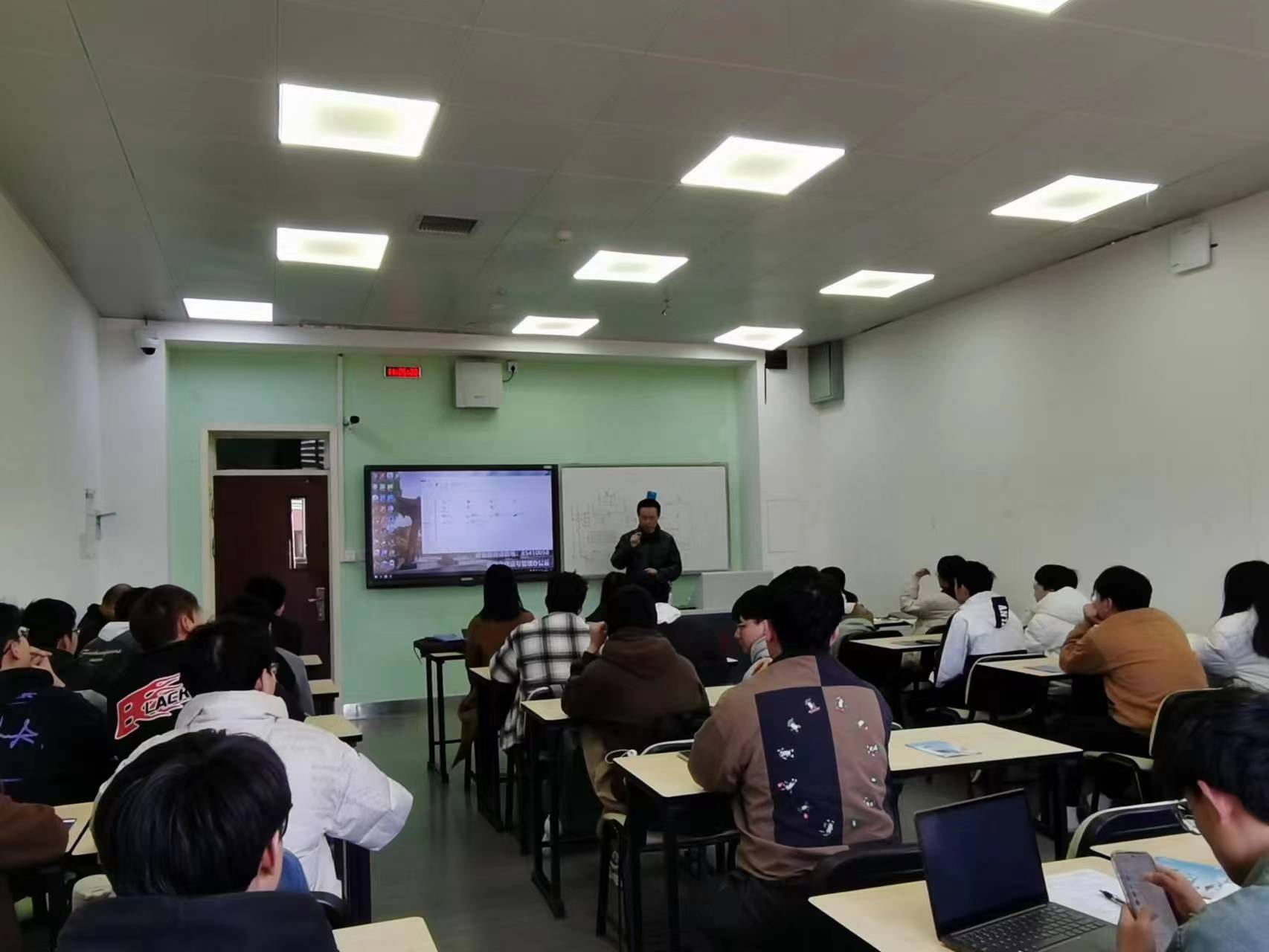举办了一场就业指导会,对象以本科考研后要就业的同学为主,研究生为辅。此次由谢老师主持会议,会上首先请中国电子信息百强企业康冠公司的校企袁总监进行了招聘宣讲。