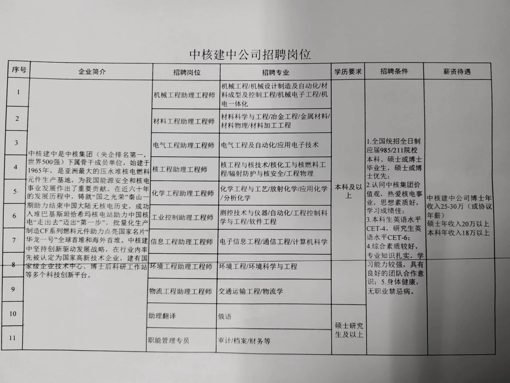 4月29日上午10点就业中心212、216、217中核建中、青霆科技等招聘宣讲