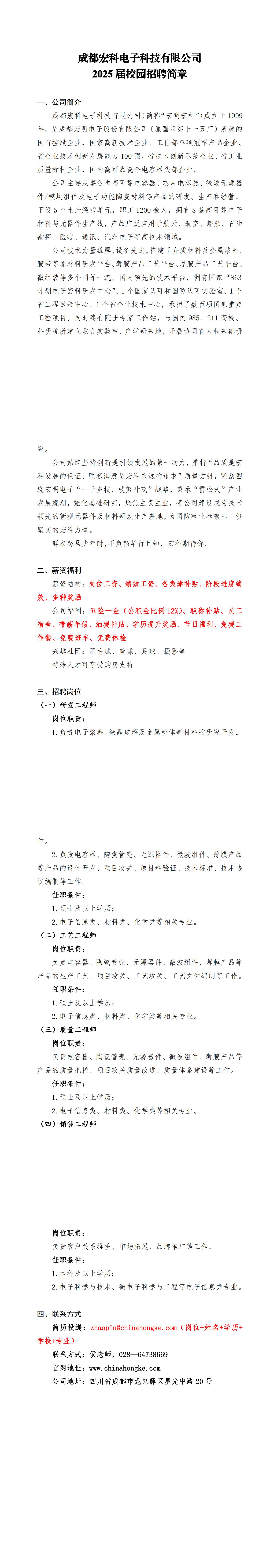 10月22日 15:20 就业中心215 成都宏科电子科技有限公司2025届校园招聘