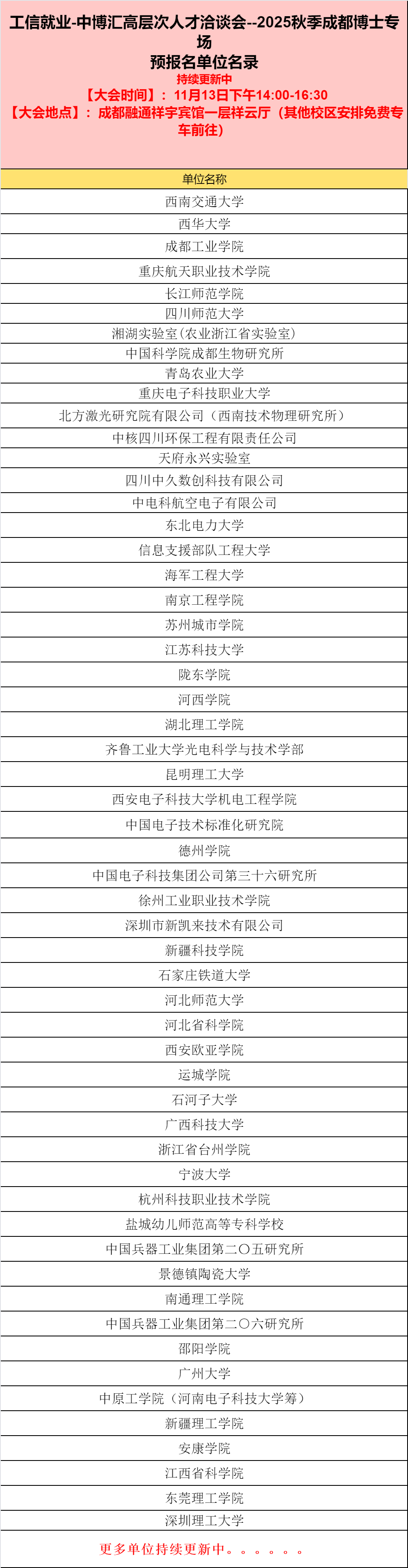 🔥工信就业-中博汇高层次人才洽谈会(2025年度)秋季巡回招聘会-成都博士专场就在本周四!