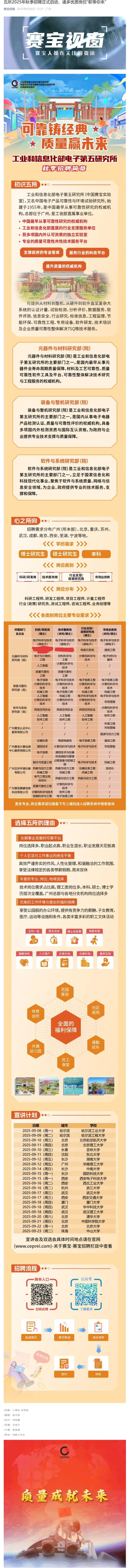 🌟活动类型:宣讲会a漫 的同学们看这里!电子五所(中国赛宝实验室)—— 国家级研究所,成立已经 70 载,总部在广州,岗位覆盖全国,开放科研岗、技术服务岗、市场岗,招聘电子类、计算机类、软件类、仪器类专业~不仅有稳定广阔的职业发展空间、竞争力的薪酬、五险一金、周末双休,单位还有配套教育、体育会馆和医务室,本科、硕士、博士都有对应岗位,26 届同学们千万别错过~