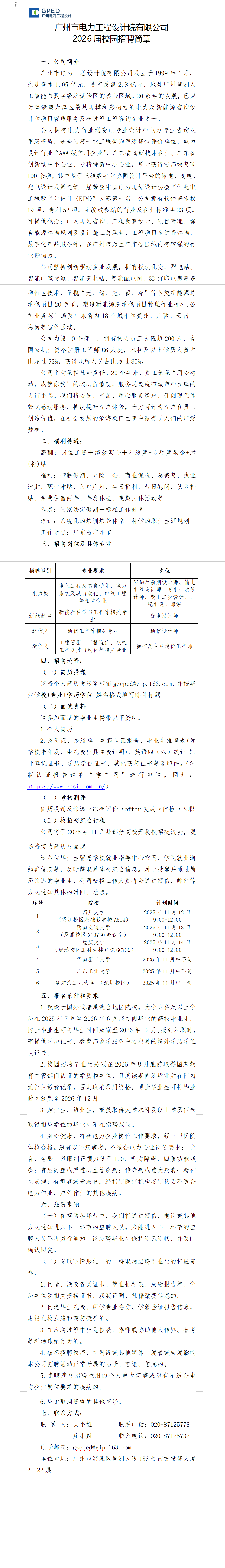 广州市电力工程设计院有限公司2026校园招聘正式启动