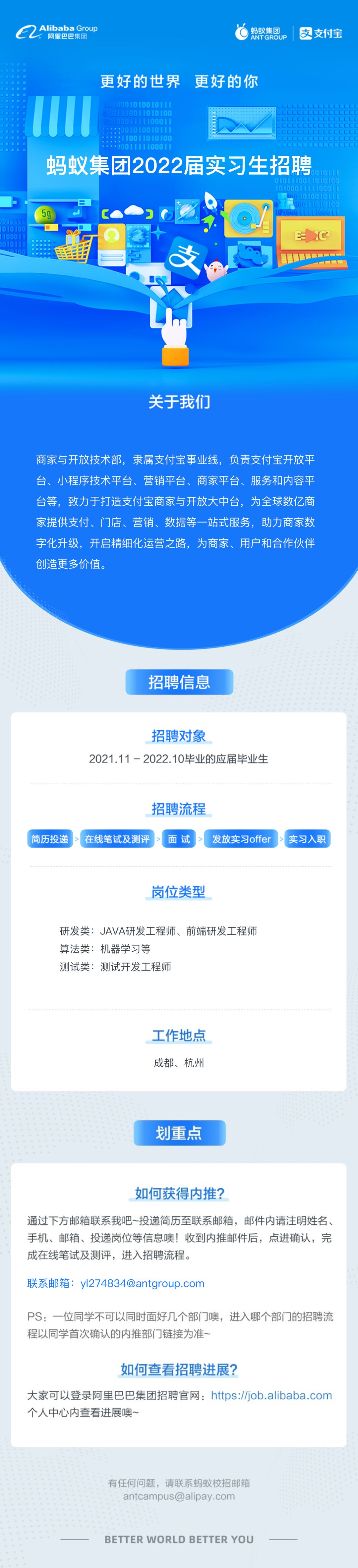 我们团队在做什么?聚焦在蚂蚁集团支付板块,超过10亿的用户及支付数据在我们平台流转,你能感知到支付产品都是我们的业务范围。 你将有机会