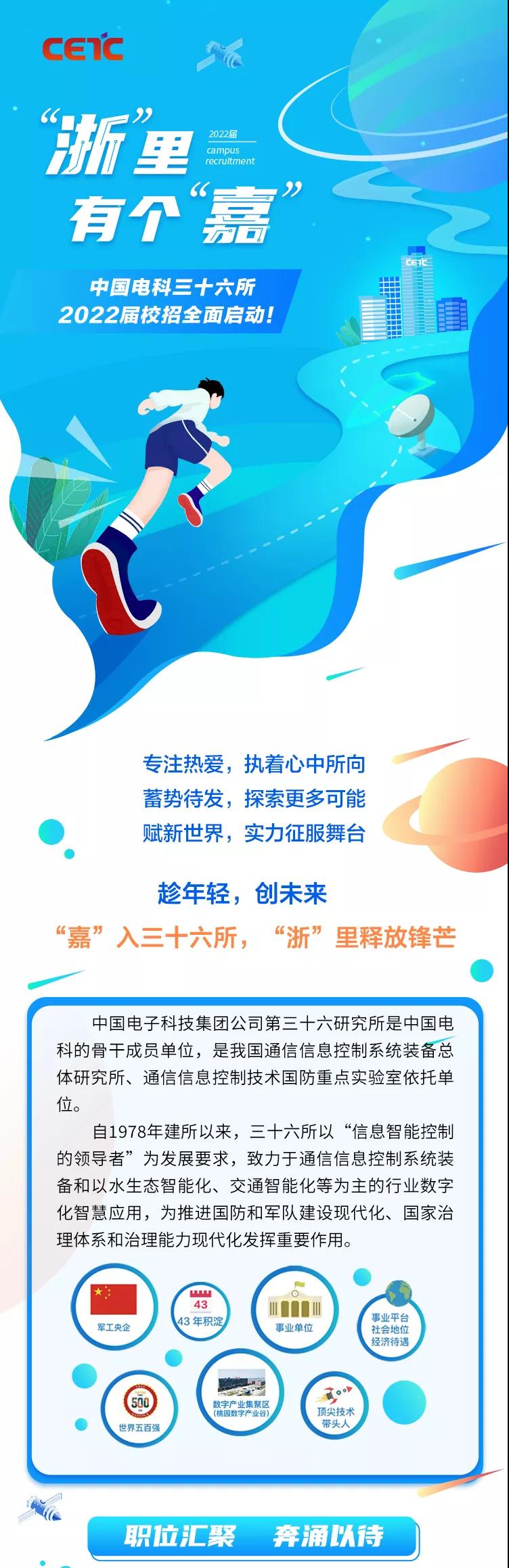 中国电科三十六所2022届校招宣讲会:【a漫 】9月26日15:20-17:20,就业指导中心221室★事业编制、安家费(硕士15-28万、博士35-68万)等福利,具体请登入各高校就业信息网查看,三十六所期待您的加盟!★请携带个人简历及相关材料参加现场宣讲,并完成网申,欢迎邀请其他同学参加现场宣讲会。