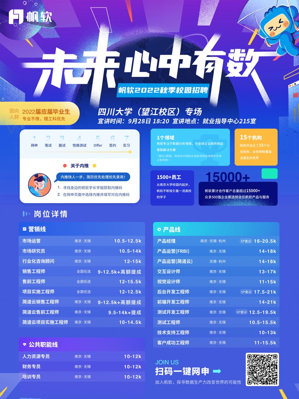 【现场福利】来听线下宣讲会,赢取直通面试Pass卡,HR现场答疑,帆软精美周边礼品随机掉落!