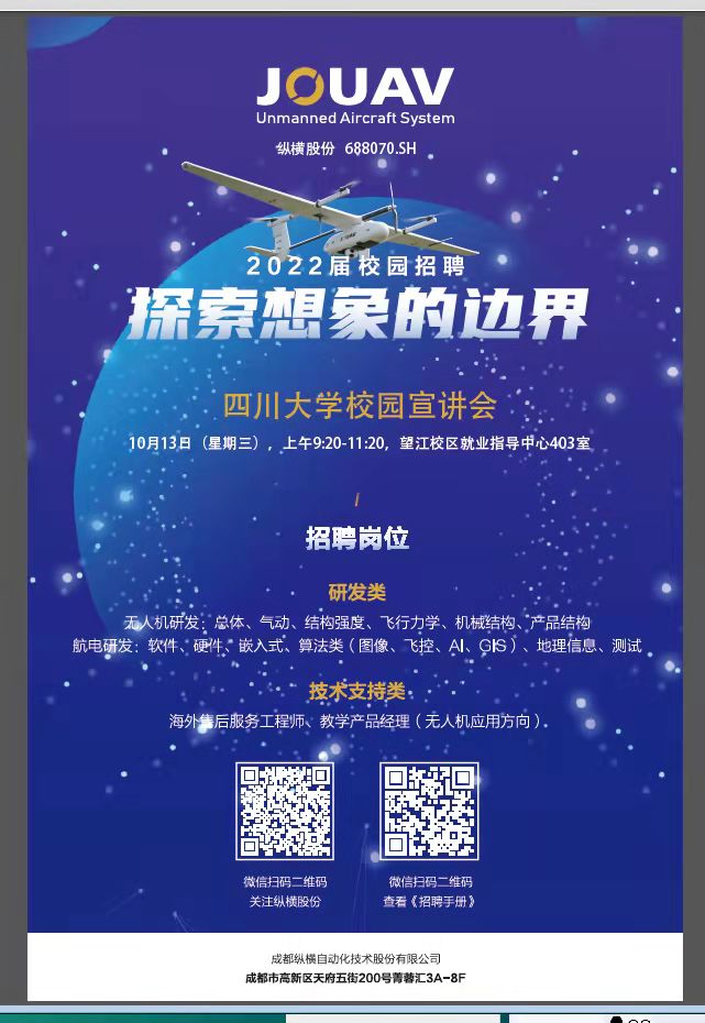 公司已形成尊重员工、培养员工、保护员工、成就员工的a漫,促进员工个体价值实现与公司价值实现融合,个人梦想和公司愿景统一,诚邀有志于无人机行业发展的志士加盟!