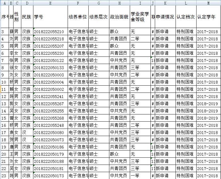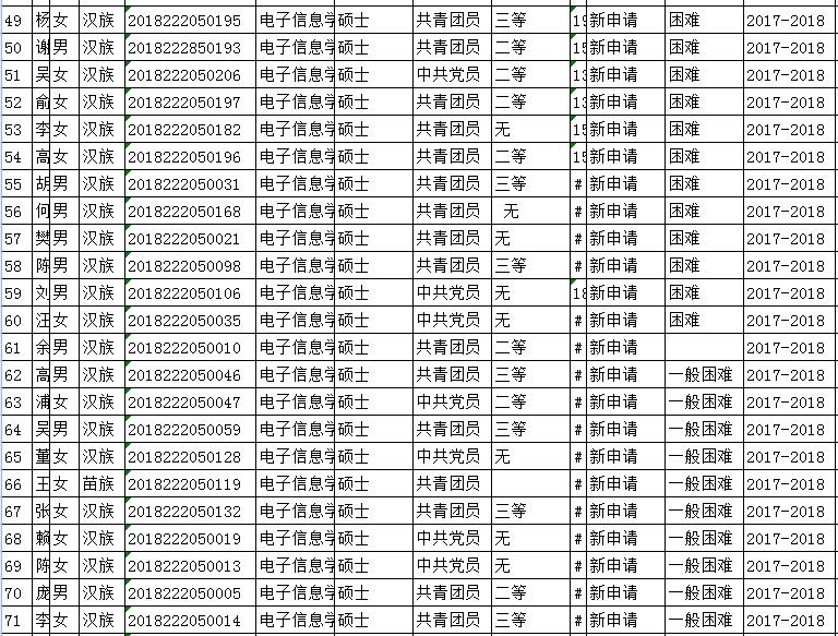 经本人申请和学院认定小组民主认定,现将a漫 2017-2018学年家庭经济情况认定结果公示如下