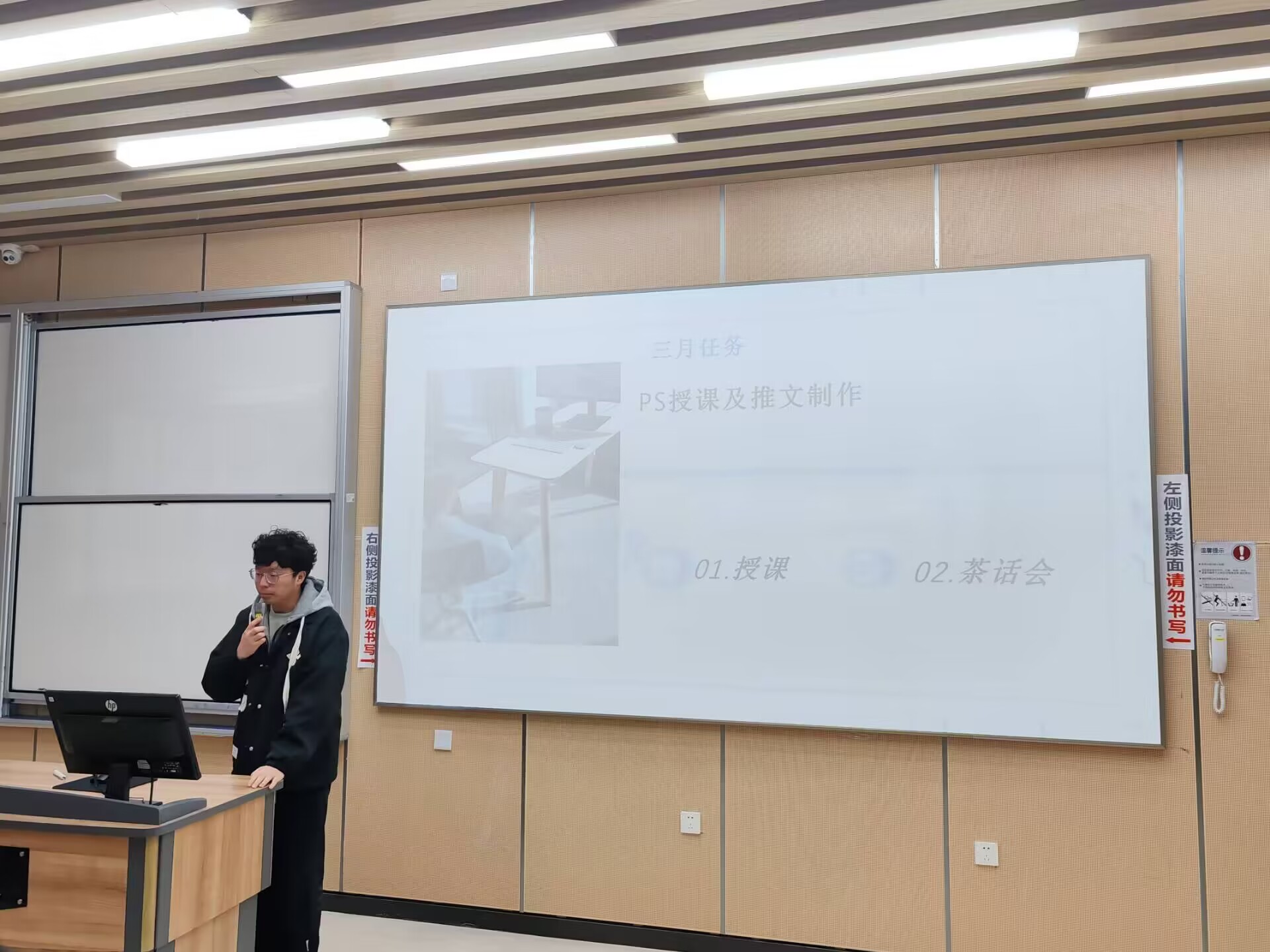 活动伊始,宣传部、外联部、行政部以及技术部各部门上台,对上学期的工作进行了详尽的总结。各部门回顾了过去一学期取得的成果,并为新学期的工作安排提出了具体的计划和措施。随后,杨驰誉学长上台为各位同学们详细介绍了人才储备计划的工作内容、意义和报名方式,并鼓励各位同学积极参加。在会议的最后环节,李代强学长公布了技术之星名单,对表现优异的同学进行了颁奖。获奖同学纷纷表示,将为科技园的发展贡献更多的力量。在例会各项议程结束后,全体成员在完成签退后有序离场。