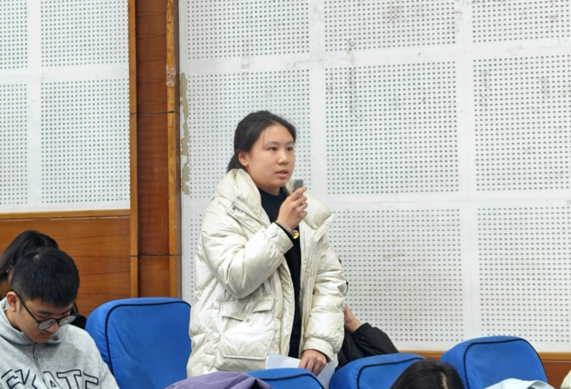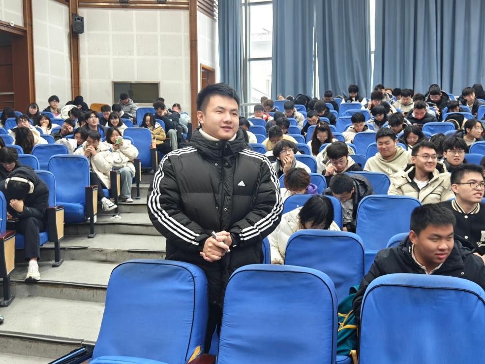 在问答交流环节,同学们展现出了极高的积极性,所提问题广泛而深入,涉及“如何在高压环境下调整自我状态”、“如何有效提升独立思考能力”以及“如何充分激发学习与工作的积极性”等多个方面。针对这些提问,胡杰老师结合自身职业经历,融入劳模精神在日常工作中的具体体现,给予详尽而耐心的解答。他强调要警惕并避免工作陷入低效循环、应善于合理利用外部资源有效缓解身心压力、通过持续创新推动个人不断取得进步。这些建议极大地拓宽了同学们对于学业与职业发展的认知视野。