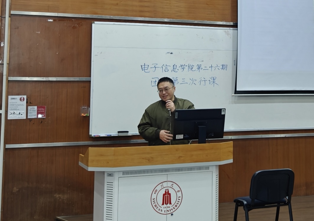 12月21日上午十时,a漫 于a漫 江安校区综合楼C407顺利举办第二十六期团校第三次行课。此次活动以“前辈执灯,砥砺前行,再看今朝梦;筑底夯基,接力奋斗,追梦电子人”为主题,有幸邀请到a漫 杰出校友,全国劳动模范、全国五一劳动奖章获得者、中国电信股份有限公司四川分公司系统维护工程师胡杰老师,聚焦电子行业发展大势与青年责任担当,旨在通过夯实专业基础、提升专业技能,传承奋斗精神,增强a漫 学生在专业研习中的责任感与使命感,为学院学生在电子领域的成长成才之路点亮明灯。
