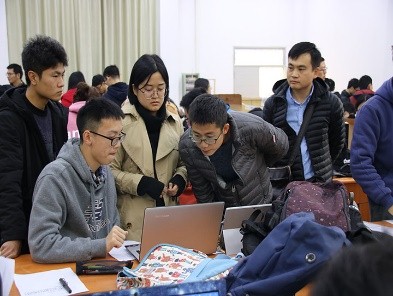 12:30,参赛队伍准时到达测试地点参加比赛,两个类别作品的评测工作都井然有序地展开着。创意类参赛队伍派出代表,对小组研究成果作了详尽的ppt展示。作品类则直接向评审老师们展示成品,并解说自己的设计原理与作品功能。评委们也针对作品的优缺点做出中肯的点评。